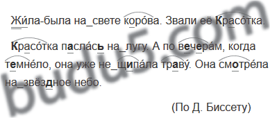 (К,к)расотка п_слас_ на лугу. А по в_ч_рам, когда т_мнело, она уже не щ_пала тр_ву. Она см_трела на звёз_ное небо.