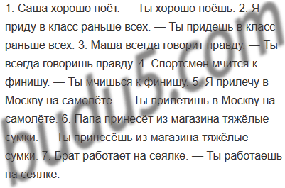1. Саша хорошо поёт. 2. Я приду в класс раньше всех. 3. Маша всегда говорит правду. 4. Спортсмен мчится к финишу. 5. Я прилечу в Москву на самолёте. 6. Папа принесёт из магазина тяжёлые сумки. 7. Брат работает на сеялке.