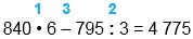 | 840 • 6 - 795 : 3 = 4 775 |