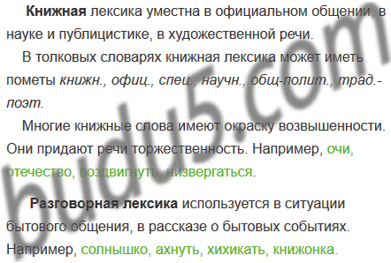 2. Используя информацию, данную в схеме, и материалы предыдущего упражнения, объясните, что такое книжные и разговорные слова.