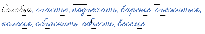 Соловей, счастливый, ехать, варить, ёжиться (от холода), колос, пояснить, поесть, веселить.