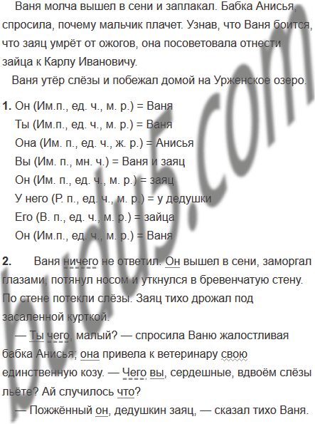 1. Какие местоимении употреблены вместо имён существительных? Выпишите эти местоимения вместе с теми словами, которые они заменяют. Определите падеж, число, а если это возможно, род местоимений.