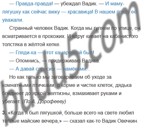 2. Прочитайте ещё раз разговор между автором текста и Вадиком. Какие реплики (слова лица, участвующего в разговоре) принадлежат автору текста, какие — Вадику? Как вы это узнали?