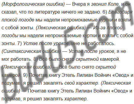 ll. 1) В комнате стояла диван-кровать и два кресла. 2) Самый умнейший из нас получил приз. 3) Все испугались случайно забревшую в наш сад собаку. 4) В субботу все уроки пройдут согласно расписания. 5) Вчера я звонил к Коле, и он сказал, что по литературе ничего не задано. 6) Благодаря плохой погоде мы надели непромокаемые куртки и взяли с собой зонты. 7) Устав после уроков, мне не работалось. 8) Всё было снято скрытной камерой. 9) Почитав книгу Этель Лилиан Войнич «Овод» и подумав, я решил закалять свой характер.
