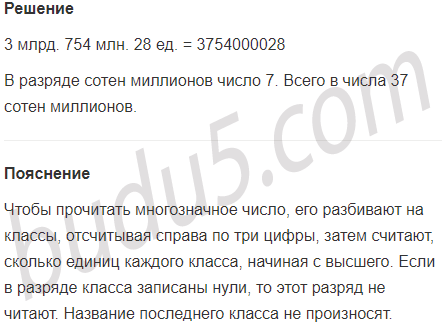 Задание № 1.  Запиши число 3 млрд. 754 млн. 28 ед. Какая цифра стоит в разряде сотен миллионов этого числа? Сколько в нём всего сотен миллионов?