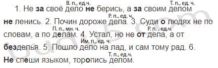 1. Не (за)своё дело (не)берись, а (за)своим делом (не)ленись. 2. Почин дороже дела. 3. Суди (о)людях не по словам, а по д..лам. 4. Устал3, но не (от)дела, а от (б..з)елья1. 5. Пошло дело на лад, и сам тому рад. 6. (Не)сп..ши языком, тор..пись делом.