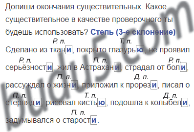 Слова с пропущенными окончаниями - существительные 3-го склонения, падеж их определяй по вопросу и предлогу, если он есть.