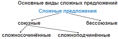 В зависимости от способа связи простых предложений в составе сложного можно выделить два вида сложных предложений: