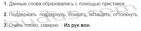 Поддержать, поддёрнуть, ссыпать, оттащить, оттолкнуть.