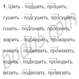 1. Подберите к данным глаголам однокоренные глаголы с приставками под- и про-. Запишите.